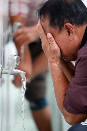 A portrait of an asian muslim ablution at mosque before pray