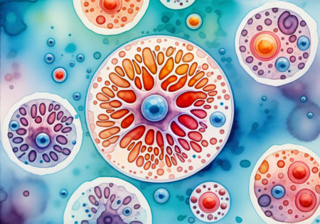 3D representation of cells in vibrant colors against an abstract backdrop, showcasing an artistic and scientific fusion