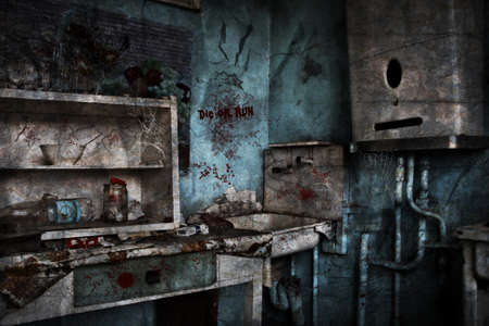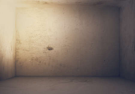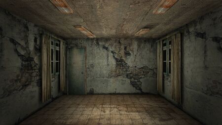 The interior design of horror and creepy damage empty room., 3D rendering.