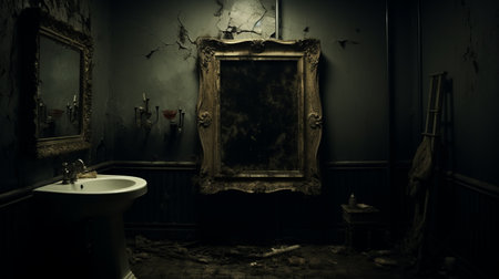 Ghosts in abandoned, haunted house. Horror scene of scary spirits, halloween concept.
