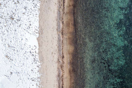 Top view of beautiful white sand with clear turquoise water