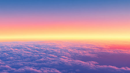 A breathtaking sunrise paints the horizon with vibrant oranges, yellows, and pinks The sun majestically rises above a sea of clouds, creating a mesmerizing panorama This celestial artistry inspires awe and serenity, a perfect depiction of nature's grandeur and a visual feast for the eyes AI Generative