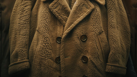 Detailed Texture of a Brown Fuzzy Winter Coat with Buttons