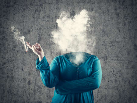 Girl smoking cigarette and the smoke raises up in place of head.