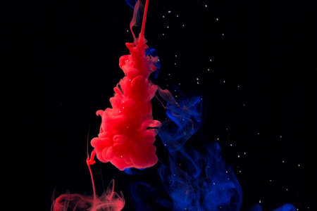 Color paint drops in water. Ink swirling underwater. Cloud of silky ink collision on black background. Colorful abstract smoke explosion animation. Close up camera view.