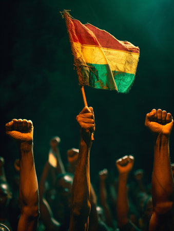 Powerful image capturing a crowd of people rebelling against the system, expressing defiance and unity