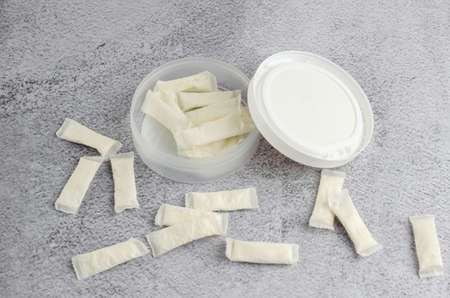 Chewing gum aligned on a table.