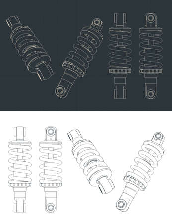 Stylized vector illustration of blueprints of bike shock absorber