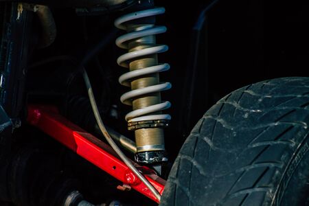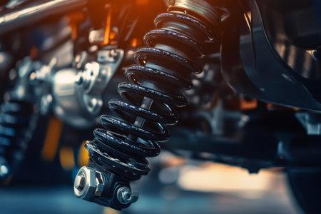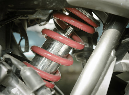 Shiny new suspension spring system of a vehicle chassis, ensuring a smooth and comfortable ride by absorbing shocks and vibrations