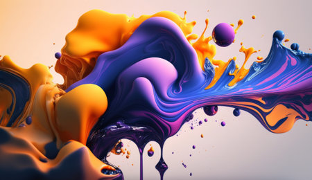 Splash of paint Colorful. Abstract background. Digital Art, colored floating liquid in the trend colors pink, orange, blue and violet. High quality photo
