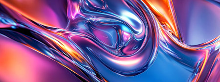 Colorful chromatic glass wavy background, smooth gradient with glossy reflective surface.