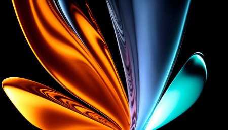 Dynamic orange and blue liquid fusion. Abstract colorful liquid interplay. AI Generative