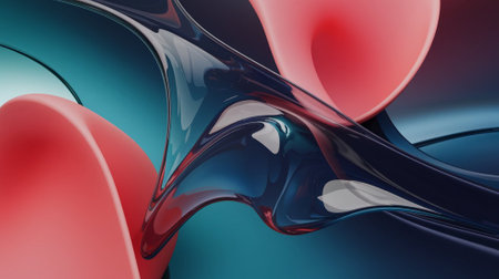 Abstract Fluid Art with Vivid Turquoise and Crimson Waves.