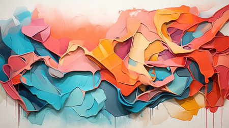 Abstract three-dimensional colored landscape painted with oil paint. AI generated.