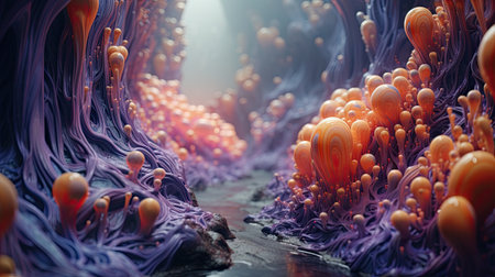 Vivid microscopic biology scene, showcasing cell anatomy. Close-up bacteria pattern, blending science and art.