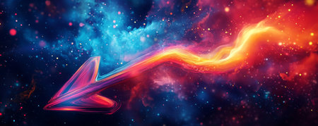 Vibrant arrow in cosmic nebula background, abstract energy concept