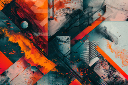 Dynamic abstract background with bold colors and sharp contrasts. Plenty of copy space on the left.