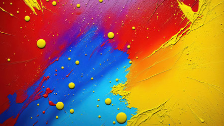 Cinematic texture featuring playful paint splatters in vibrant colors and patterns