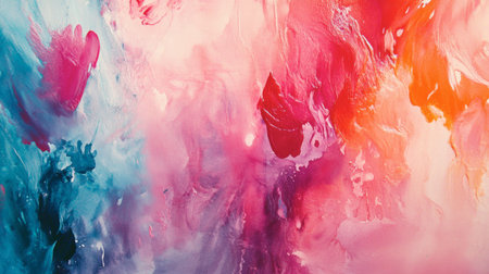 Vibrant abstract painting featuring colorful brush strokes and a fluid mixture of hues. Ideal for art lovers and creative design projects.