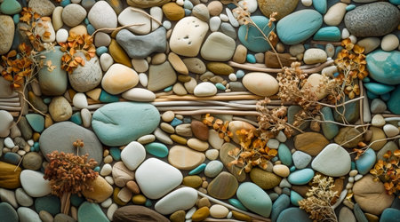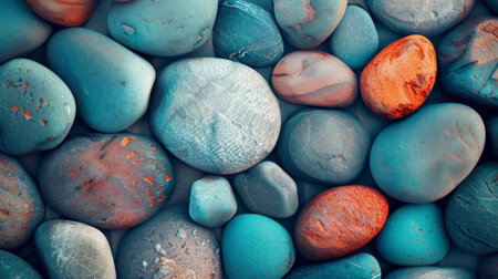 A beautiful array of river rocks with different sizes and textures, creating a colorful and calming composition
