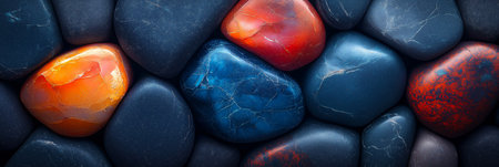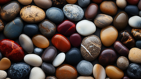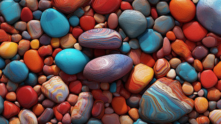 A stunning display of colorful pebbles and stones, showcasing smooth surfaces and varied patterns. Ideal for backgrounds, design projects, and artistic inspirations.