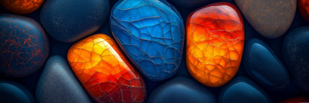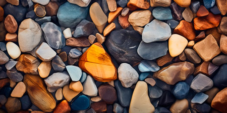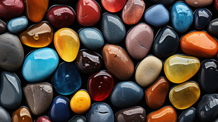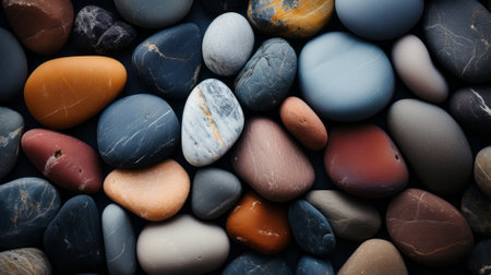 This image features a closeup of colorful and smooth pebbles, suitable for nature and relaxationrelated themes