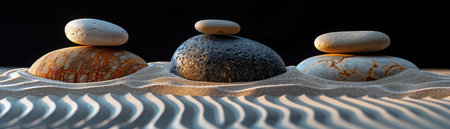 Zen garden with smooth stones and sand ripples, peaceful and meditative