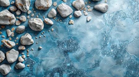 Dynamic abstract composition of multicolored minerals and cobblestones colliding in space