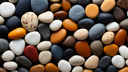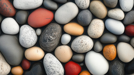 A variety of smooth stones in different sizes and colors create an attractive natural mosaic. The arrangement highlights the unique textures and hues found in nature.