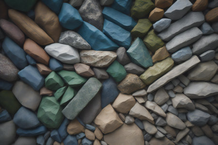 A pile of rocks with a variety of colors and sizes. Concept of ruggedness and natural beauty