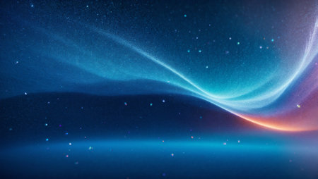 Abstract background with swirling gradients of deep blue purple and bright cyan light