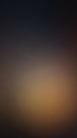 An abstract gradient background transitions from dark blue to warm amber and dark brown, creating a soft, atmospheric visual.