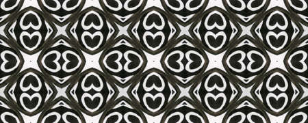 Aztec Lace Pattern. Seamless Tie Dye Ornament. Ikat Mexican Motif. Abstract Kaleidoscope Design. Black and White Monochrome Seamless Texture. Hand Drawn Aztec Lace Pattern.