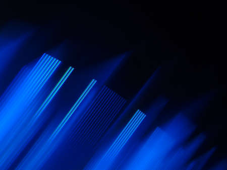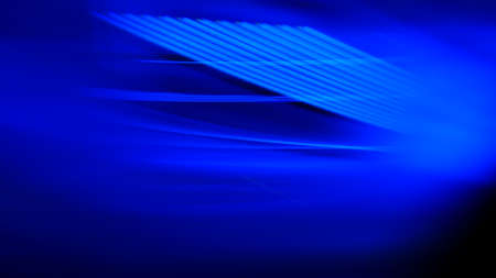 Blur neon light. Luminous rays. Cyber illumination. Defocused ultraviolet navy blue color laser beam flare motion on dark black futuristic abstract background.
