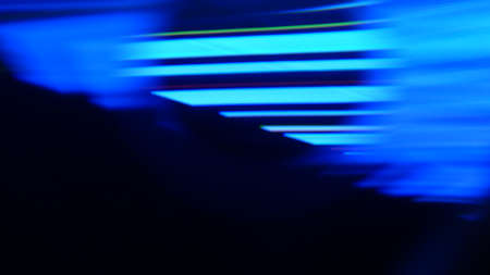 Blur light flare. Bokeh neon glow. Futuristic LED glare. Defocused ultraviolet blue color rays motion modern presentation abstract background.