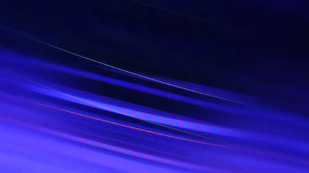Blur neon light. Luminous rays. Cyber illumination. Defocused ultraviolet navy blue color laser beam flare motion on dark black futuristic abstract background.