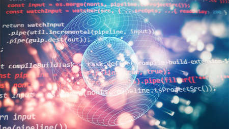 Abstract technology background featuring programming code for software development and coding