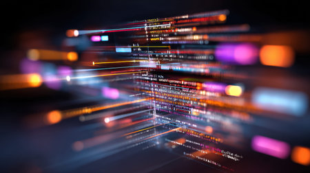 This abstract image features a colorful stream of code data, creating a vibrant and futuristic background. Ideal for technology and design projects.