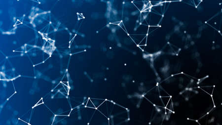 Network connection structure. Abstract background with moving dots and lines. Futuristic illustration. Digital technology design. 3d rendering.
