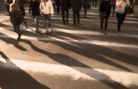 People crossing street outdoors, closeup. blurred view