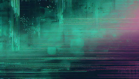 Abstract background with a glitch effect, featuring distorted lines and colors reminiscent of a digital error.