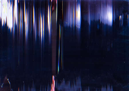 Glitch overlay. Display damage. Glowing stripes dust on dark background.