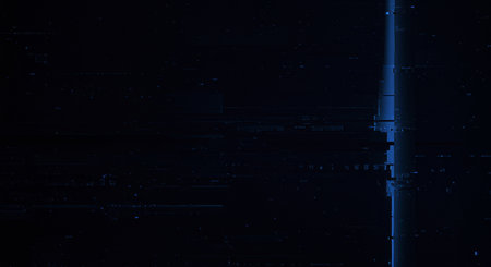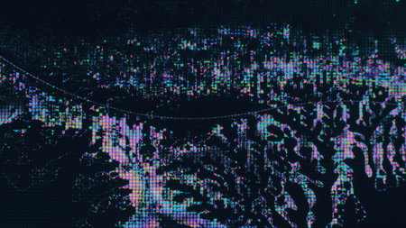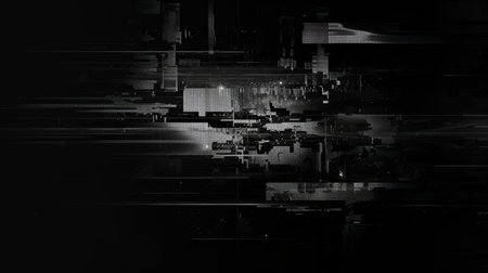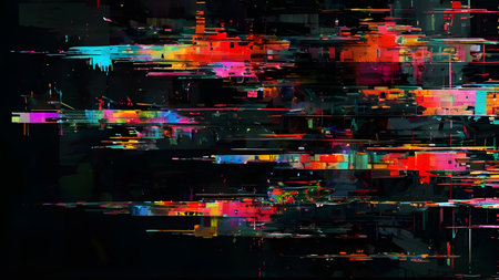 Glitch effect creating digital distortion with chaotic noise in a dark setting