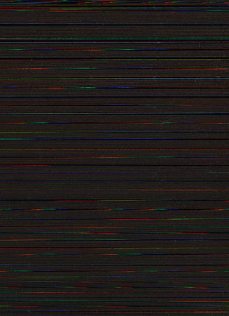 Glitch background. Digital artifacts. Black analog tv computer monitor noise damaged vhs vcr tape green blue red color line retro abstract.