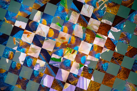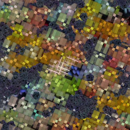 Colorful stained glass square fractal, computer generated abstract background, rendering