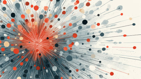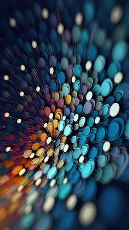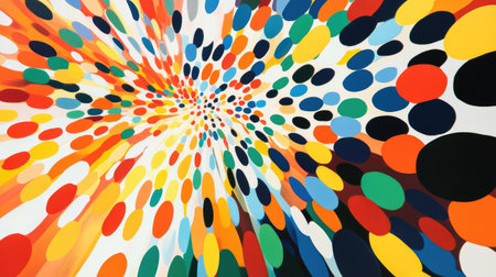 This vibrant abstract artwork features a dynamic composition of colorful dots radiating outward, creating a feeling of movement and energy. Perfect for artistic themes.