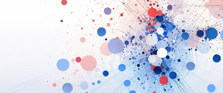 This vibrant abstract image features a dynamic splash of colorful dots and lines, perfect for enhancing creative projects or artistic designs.