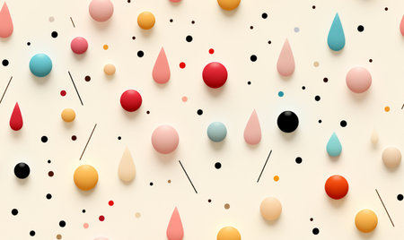 This image features a vivid and playful abstract texture with various colorful shapes and spheres, perfect for creative design and artistic projects.