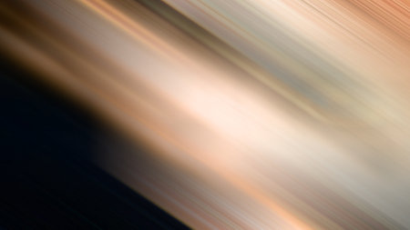Horizontal motion blur abstract background with soft streaks of brown, orange, blue, and white.