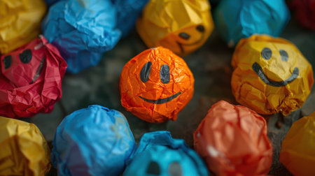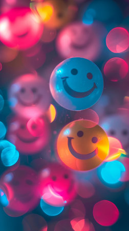 Colorful bokeh with cheerful smiley faces, vibrant and happy concept